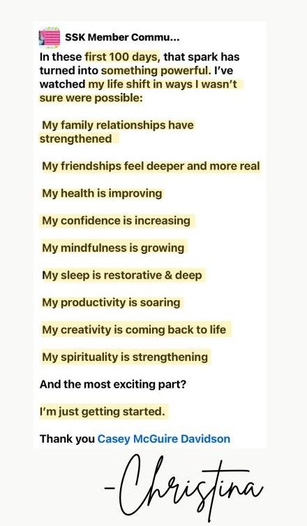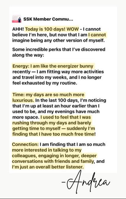 2 months of my daily support, connection & community inside the SSK private member group.