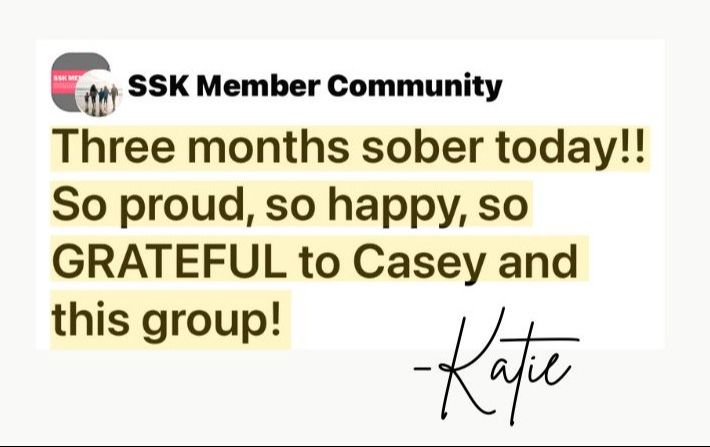 You’ll be welcomed into the SSK Private Member Community—a space for real-time support, connection and accountability. You'll get direct feedback and coaching from life & sobriety coach, Casey Davidson.